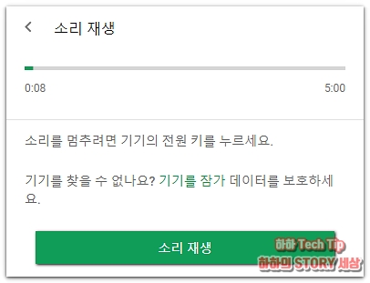 휴대전화와 구글 계정과 연동되면 3가지 동작을 시킬 수 있는데, 첫 번째로 소리 재생이 가능하다. 인적이 드문 곳이나 어두운 곳에서 기기 분실 시 벨소리를 진동 또는 무음으로 했을 때 유용하게 사용할 수 있다.