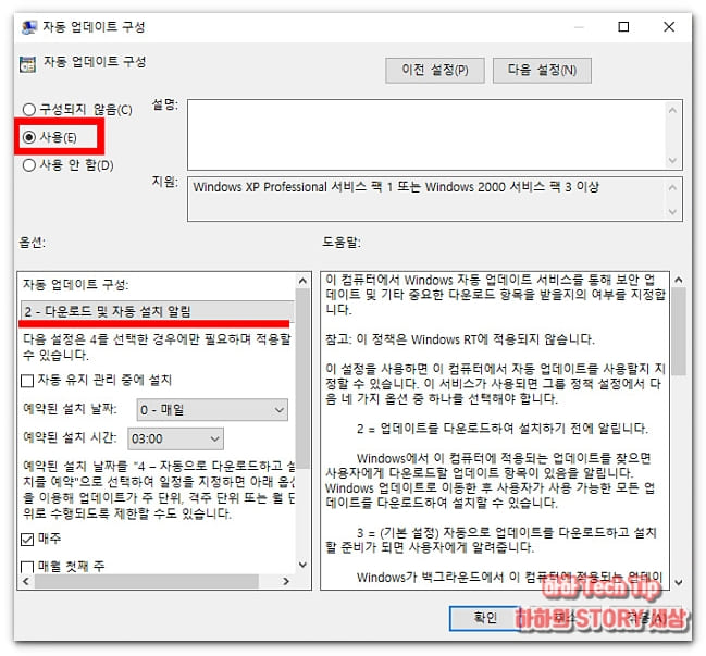 2. 윈도우 업뎃 OFF 중 기능 사용방법