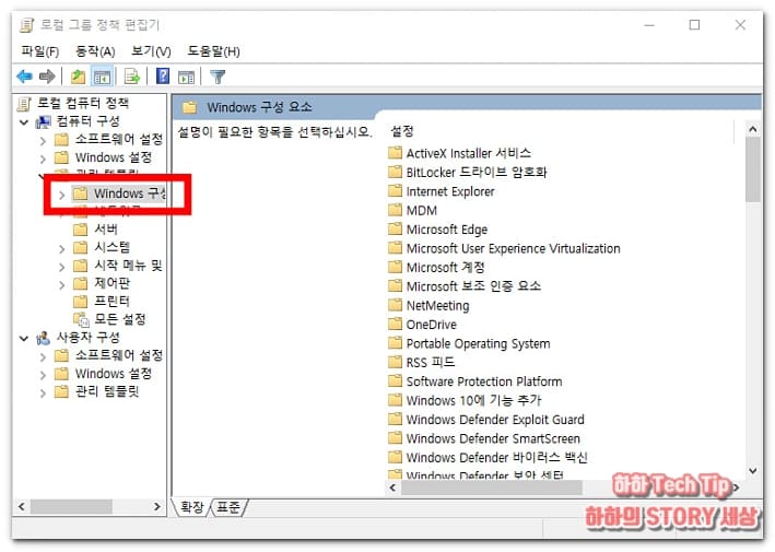 컴퓨터 구성 항목에서 관리 템플릿 → Windows 구성요소 순으로 이동한다.