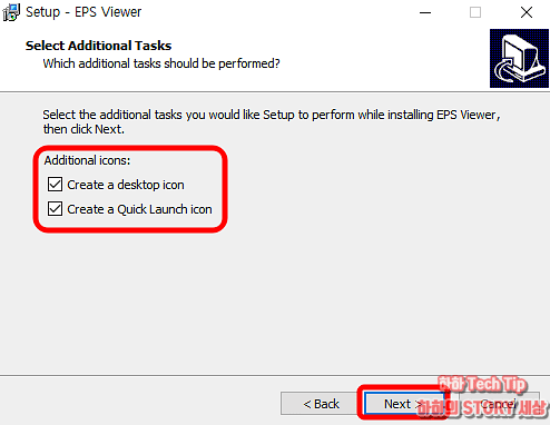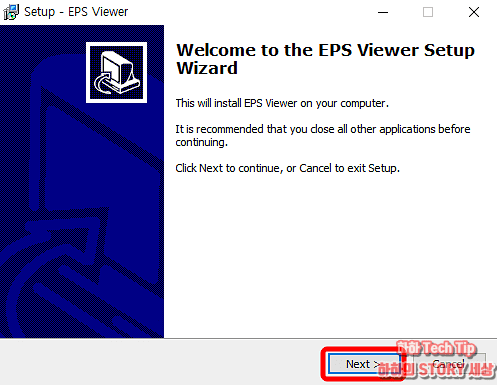 다운받은 epsviewersetup.exe 파일을 실행 후 프로그램 셋업 화면과 라이선스 관련 내용이 나타나면 Next를 눌러 다음으로 이동한다.