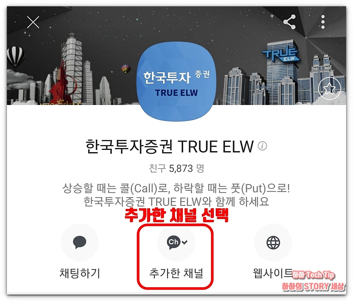 대상 홈으로 이동 후 하단에 위치한 '추가한 채널'을 누른다.