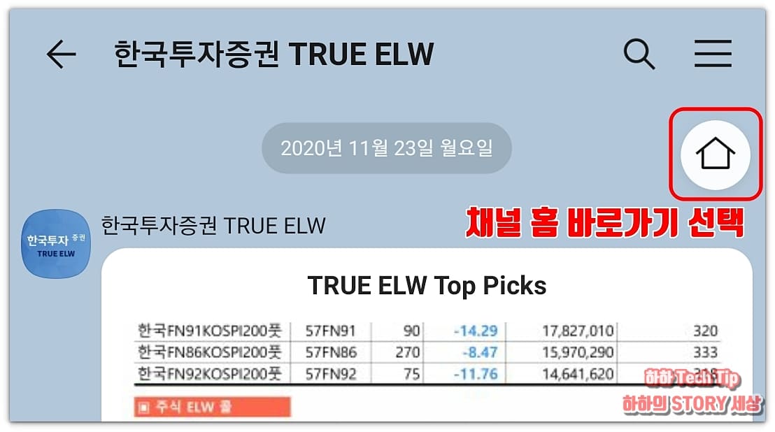 사용 목적이 다했거나 호기심에 가입한 것이라면 과감히 삭제하면 되는데, 사진처럼 차단하고자 하는 대화방을 선택하고 오른쪽 상단 '채널 홈 바로가기'를 클릭한다.