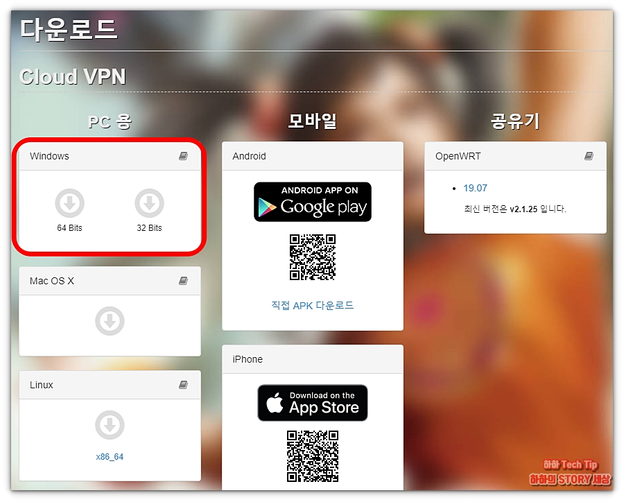 프로그램은 윈도우, 맥, 리눅수, 안드로이드, 아이폰, 공유기 환경에서 사용이 가능하니 사용자가 운영하는 OS에 따라 선택해서 다운을 받는다.