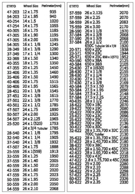 C3는 휠 사이즈 세팅 설정으로 스피드 센서 사용 시 입력하면 된다. 휠 사이즈별 수치는 위 표를 참조해서 넣는다.