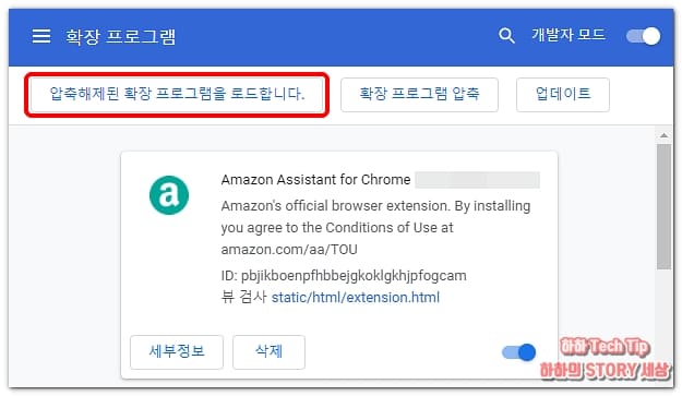 처음에 보이지 않던 기능들이 개발자 모드에서 3개가 추가된 것을 볼 수 있으며, 이중 확장 프로그램을 로드합니다를 선택한다.