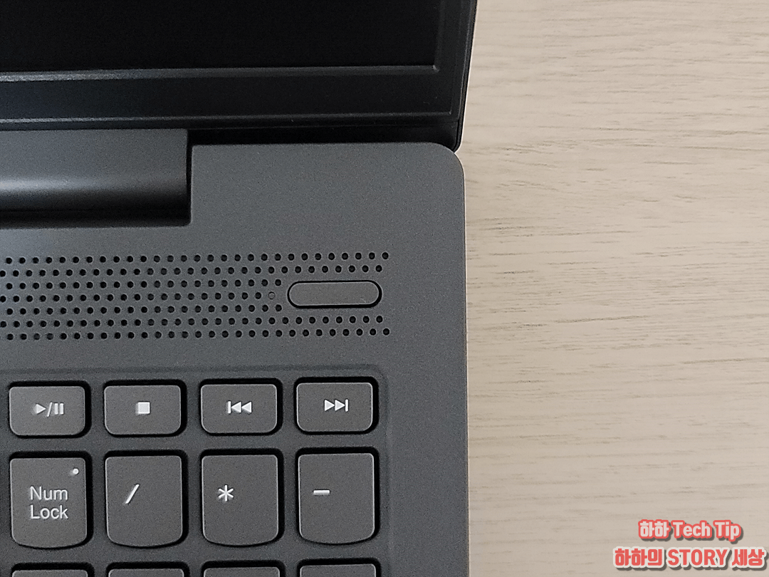 우측 상단에 위치한 전원버튼은 지문 인식이 지원되어 누군가 몰래 노트북에 접근하여 저장된 자료를 탈취하는 것을 방지한다.