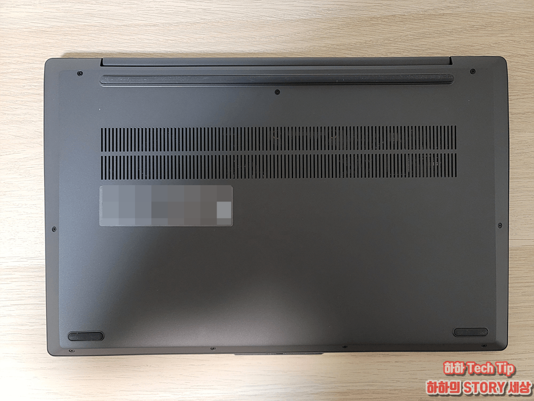 바닥은 미끄럼 방지 고무와 쿨링을 위한 냉각 공간이 위치해 있다. 제품 두께가 얇아지면서 측면에 달리던 배기 공간이 아래로 내려가는 게 현재 트렌드로 보인다.