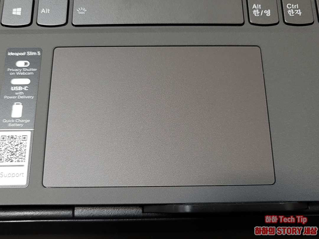 상단에 위치한 돌비 사운드는 동영상 및 게임 시 무난한 소리를 들려주며, 하단 중앙에서 좌측에 위치한 터치패드는 타이핑 시 간섭으로 인해 발생할 수 있는 클릭을 방지한다.