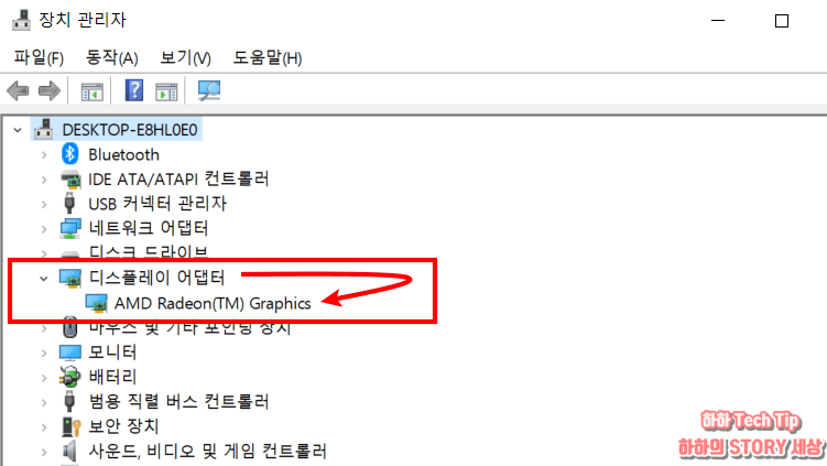 디바이스 항목 첫 번째 이름에서 컴퓨터 그래픽카드를 최종적으로 확인할 수 있다.