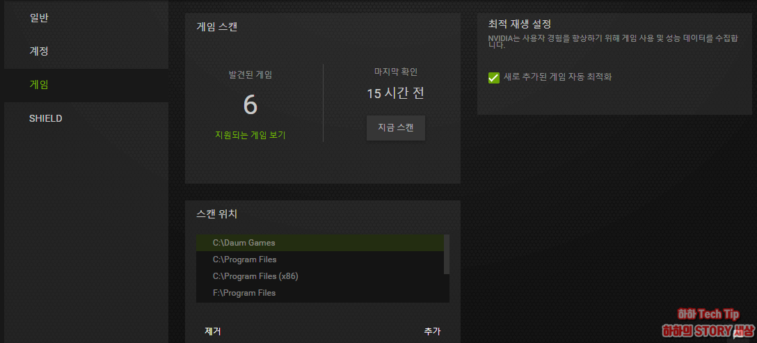 게임 카테고리는 앞서 언급했던 인식되지 않는 게임을 강제 스캔 할 수 있는 곳으로 추가 및 제거도 가능하다.