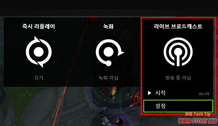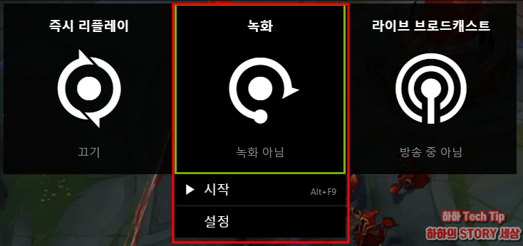 편리한 기능 중 하나인 녹화, 캡쳐, 라이브 방송은 Cltr+G 단축키를 이용해서 게임 중에도 인터페이스를 활성화 할수 있다.