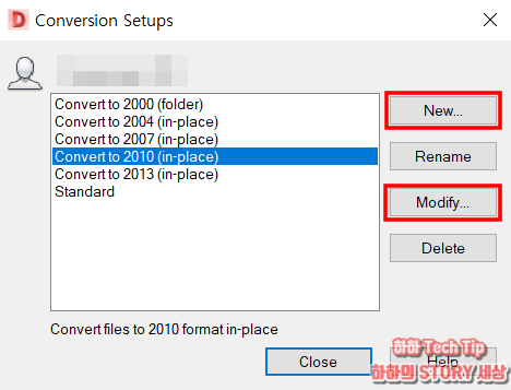 만약 다수의 파일을 여러 형식으로 자주 변경해야 한다면 설정을 미리 지정해서 클릭 한번으로 원하는 버전과 형태로 변환할 수 있다. 새로운 설정을 만들기 위해 New 또는 Modify를 누른다.