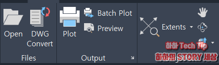 DWG TrueView 탭에는 7개 패널들이 있으며, 각 기능들은 다음과 같다.