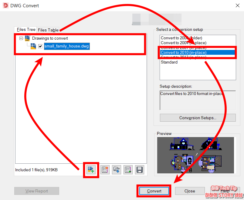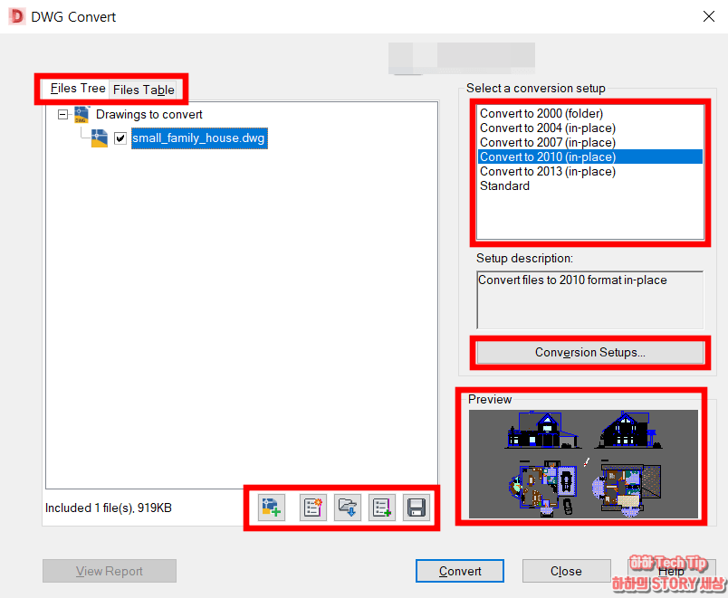 DWG Convert 창에는 다양한 기능 메뉴들이 있는데, 하나하나 살펴보자