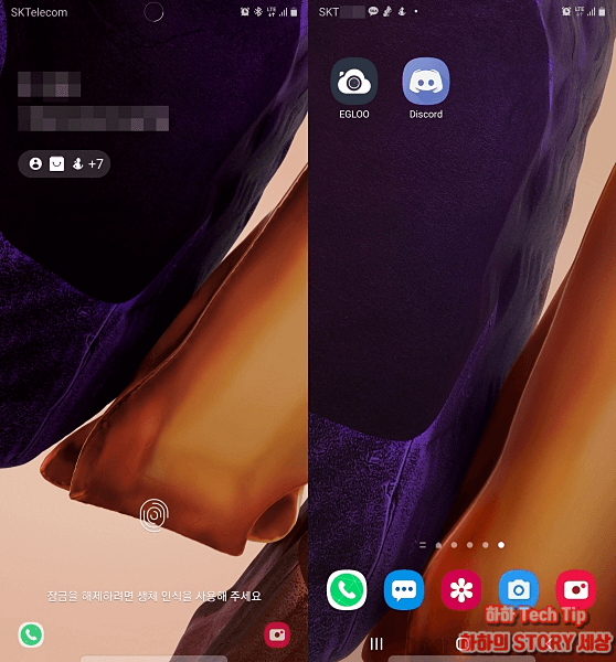 잠금해제 즉시 휴대폰 잠금 상태에서 스크린 바탕화면으로 변환된다.