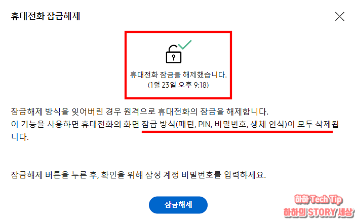 휴대전화 잠금을 해제했다는 안내와 함께 작업이 끝난다.