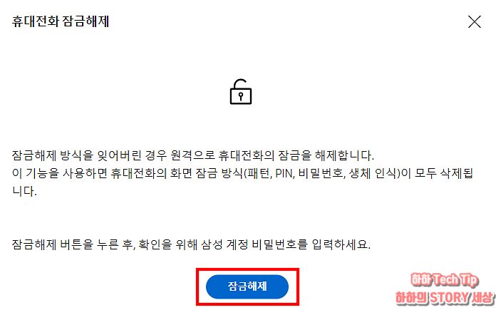 휴대전화 잠금해제 버튼을 클릭한다.