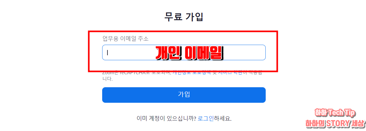 인증을 위한 생년월일을 기입하고 로그인 아이디로 사용할 이메일 주소 입력 후 가입을 클릭한다. 화면에는 업무용이라고 나와 있는데, 평소 사용하는 개인 이메일을 쓰면 된다.