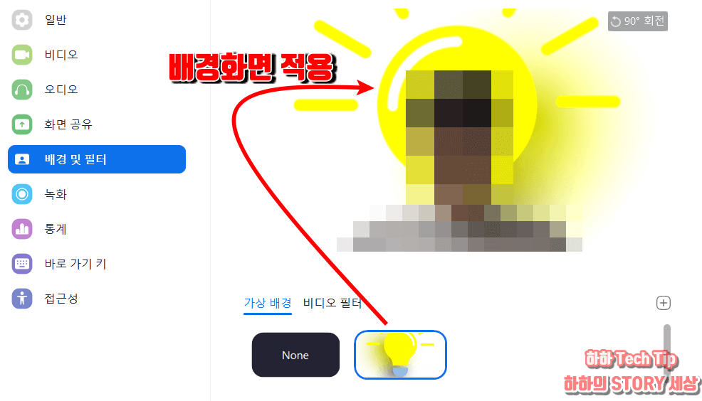 집안 내부가 적나라하게 드러나 민망했던 배경이 사용자가 지정한 전구 배경으로 바뀌었다. 시간이 없어 방청소를 못했거나 내부를 보여주기 싫을 때는 Zoom 가상배경 기능으로 한 번에 처리할 수 있다.