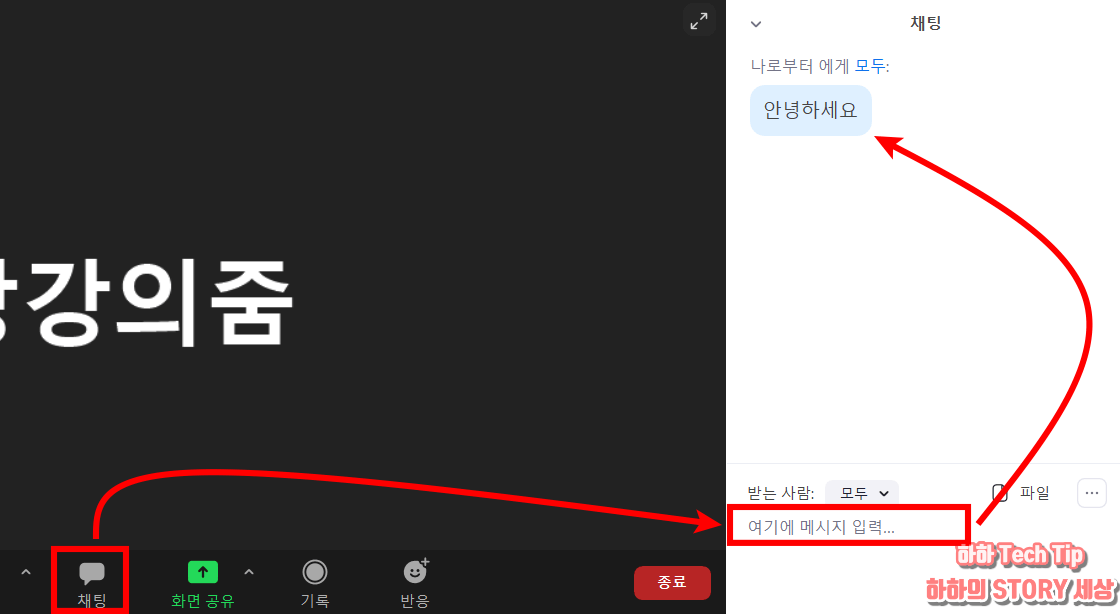 채팅 버튼을 누르면 우측에 채팅창이 활성화되고 메시지 입력란을 통해 상대방과 이야기를 할 수 있다.