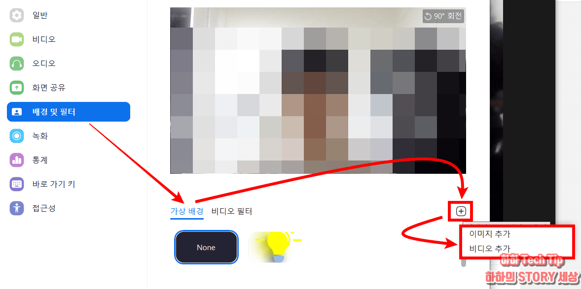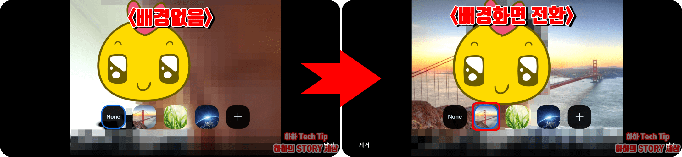 Zoom에는 3가지 배경이 지원되는데, 우측 + 버튼을 눌러 스마트폰에 저장된 파일을 불러와서 뒷배경으로 지정할 수 있다.