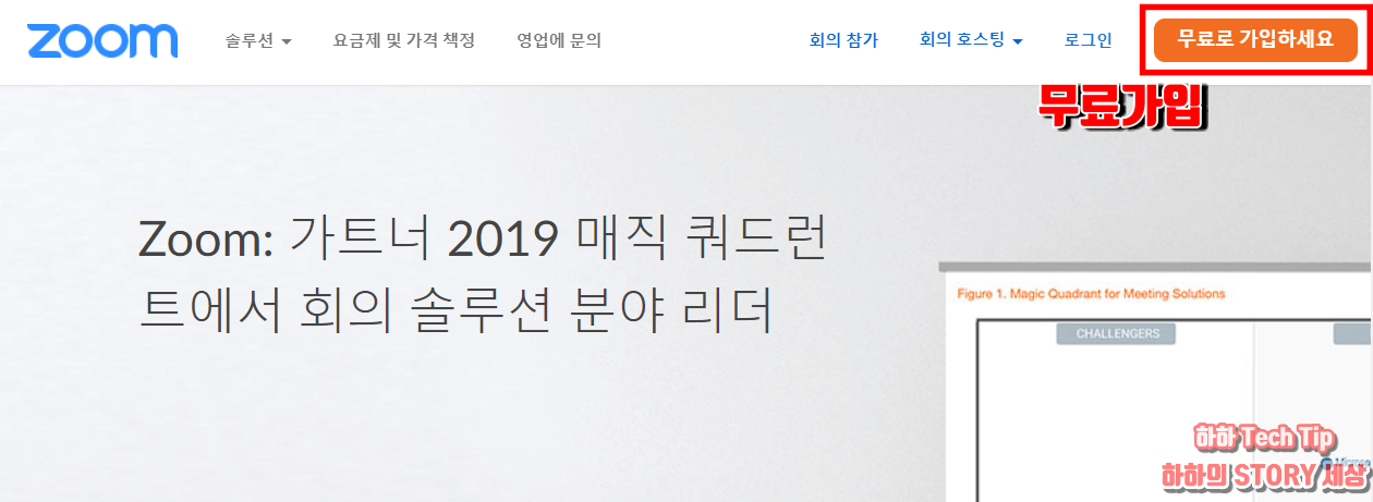 시작페이지로 이동하면 우측 상단에 보이는 무료가입 배너를 클릭한다.