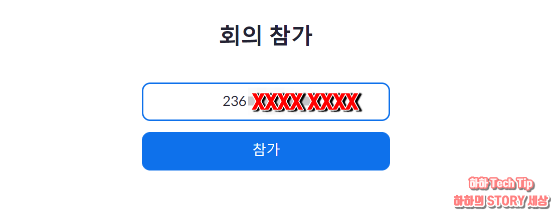 만약 별도의 개인회의 URL 없이 XXX XXXX XXXX 형식의 11자리 회의 ID 숫자를 받았다면 ZOOM 메인화면 중앙 상단에 있는 회의 참가 메뉴를 누른 후 빈칸에 입력하고 참가를 클릭한다.
