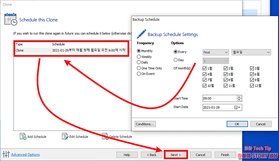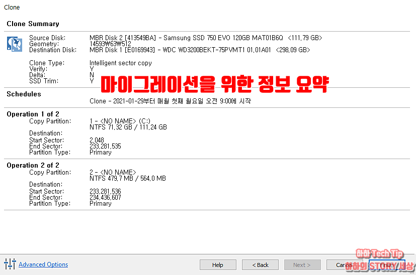 마이그레이션 최종 진행 전 디스크에 대한 백업 유무를 확인하다. 작업이 시작되면 복사될 디스크속에 포함된 모든 데이터들이 사라지니 새로 구입한 SSD, HDD가 아니라면 그 속에 보관해야 할 내용이 있는지 꼭 확인한다.