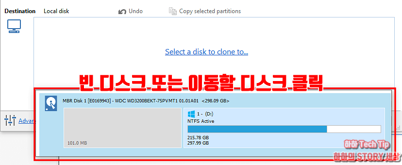 작은 창이 나타나며, 새로 구입한 하드나 교체할 SSD 중에서 하나를 선택한다.