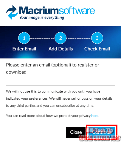 다운로드 시작 전 이메일 등록 화면이 등장하는데, 입력 유무에 관계없이 설치가 가능하니 우측 하단 Continue를 클릭한다.