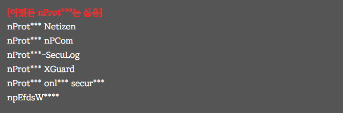 특히 유명한 것이 은행 방문 시 설치되는 각종 키보드 및 보안 프로그램들로 설치하고 싶지 않지만 온라인 뱅킹을 위해서 반드시 깔아야 하기에 스스로 족쇄를 채우는 일이 발생한다.
