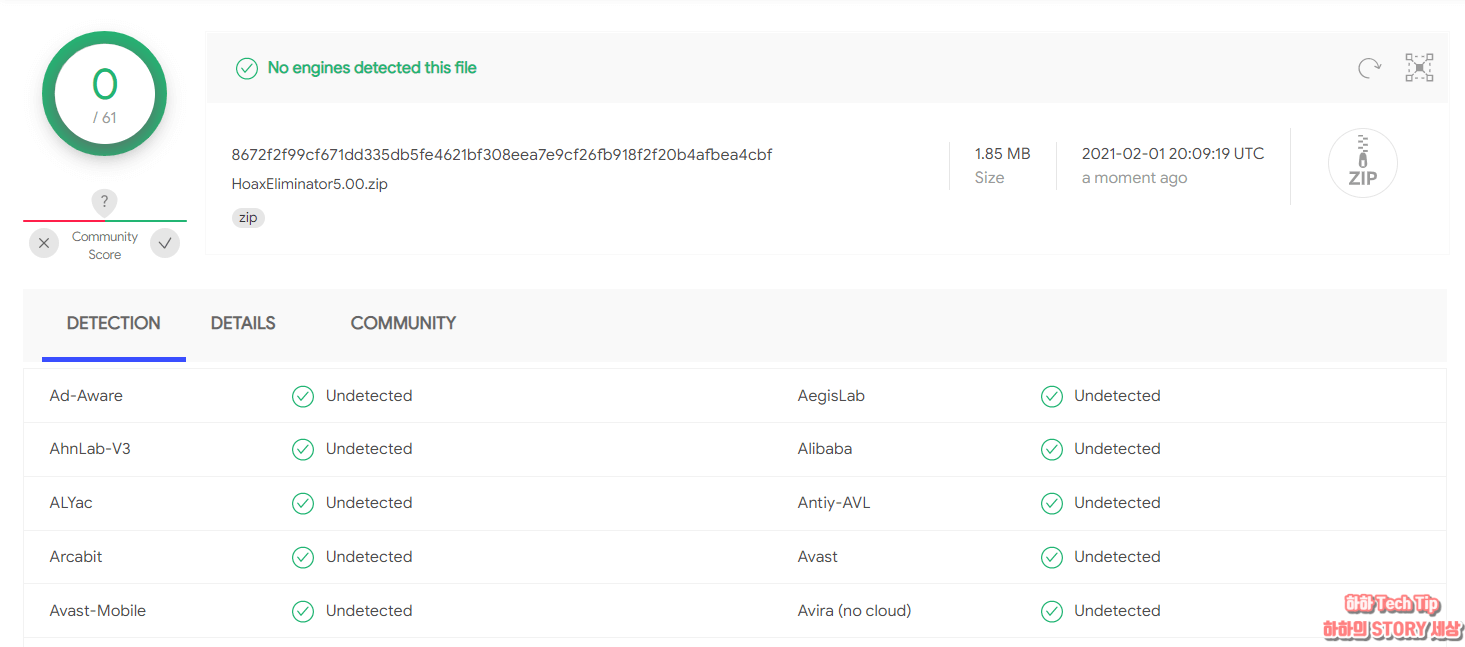 개인 프로그래머가 만든 유틸로 악성코드 및 랜섬웨어 등으로 걱정이 있을 수 있는데, 바이러스 토탈 엔진 및 마이크로 소프트 디펜더 탐색 시 깨끗한 프로그램으로 판정되었니 안심하고 사용해도 된다.