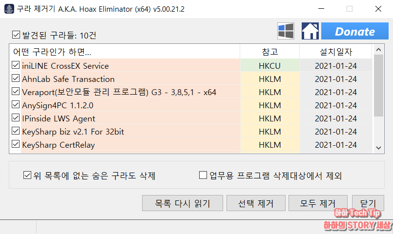이런 것들은 일반 사이트뿐만 아니라 정부기관 방문 시에도 동일하게 적용되며 컴퓨터는 점점 무거워진다. 예전처럼 자주 온라인 PC 뱅킹을 이용했다면 모르지만 지금은 모바일 뱅킹이 대부분 차지하면서 이런 툴들에 대한 삭제가 필요하다.