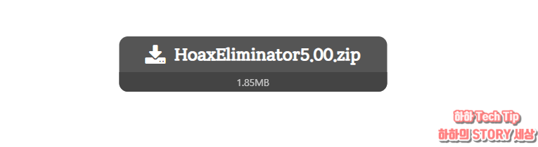 사이트로 이동하면 HoaxEliminatorX.XX.zip 배너를 클릭 후 파일을 다운로드한다. 뒤에 붙는 X.XX 명칭은 버전을 의미하는 것으로 이슈 발생 시 개발자가 신속하고 빠르게 업데이트하는 편이다.