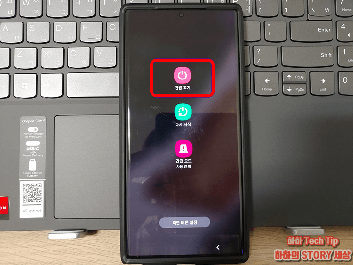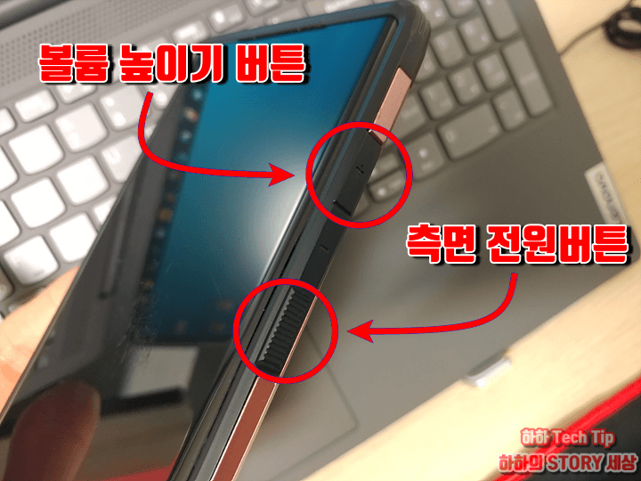 메뉴 내 위아래를 이동하는 방법은 볼륨 버튼을 이용하고 선택은 전원 버튼을 누르면 된다.