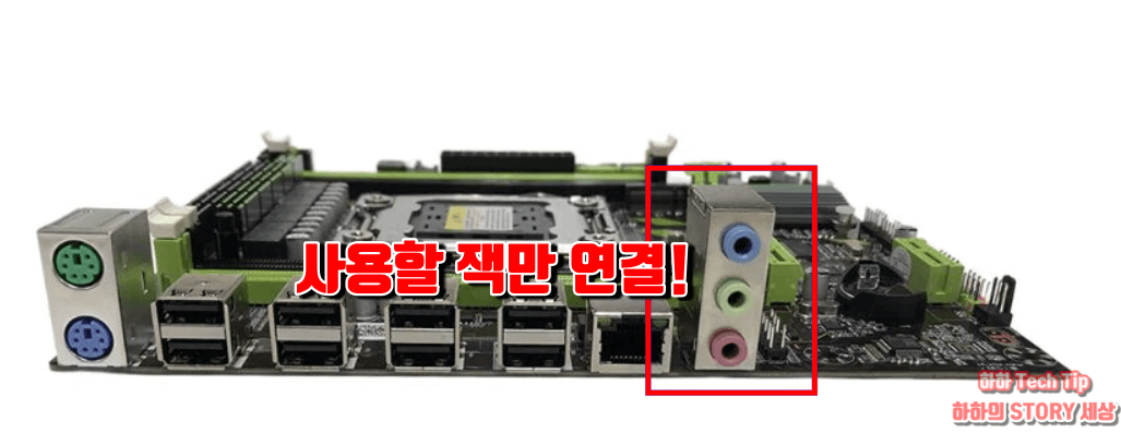 헤드셋으로 소리만 듣는다면 주황색 단자, 스탠드 마이크는 초록색 단자에 연결