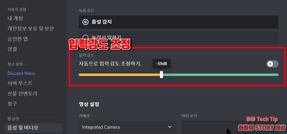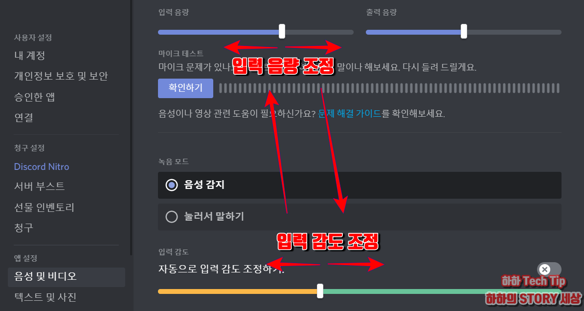 ☞ 개인 디스코드 방으로 가서 총을 쏘았을 때 디스코드가 깜빡거리면 소리가 유입되는 것으로 감도를 낮추면서 깜빡임이 없는 수치를 찾으며, 말이 자세히 들리지 않을 시 입력 음량을 조금씩 증가시킨다.