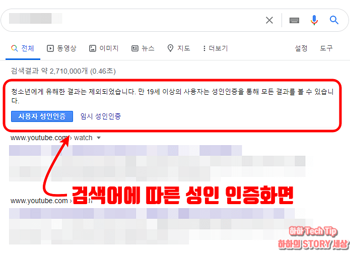 하지만 포털에서 위와 같은 내용으로 검색을 하기 위해서는 성인인증이 필요한데, 국내 대표 검색엔진인 네이버는 휴대폰 인증과 아이핀 인증 두 가지 중 편한 방법으로 진행하면 되지만 구글의 경우는 좀 다르다.