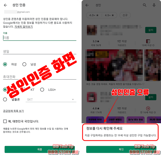 성인인증 중 생기는 5가지 오류는 구글 플레이 스토어, 스마트폰, 컴퓨터에서 모두 발생하며, 각 환경에 따라 해결이 가능하니 아래 방법에 따라 진행하면 된다.