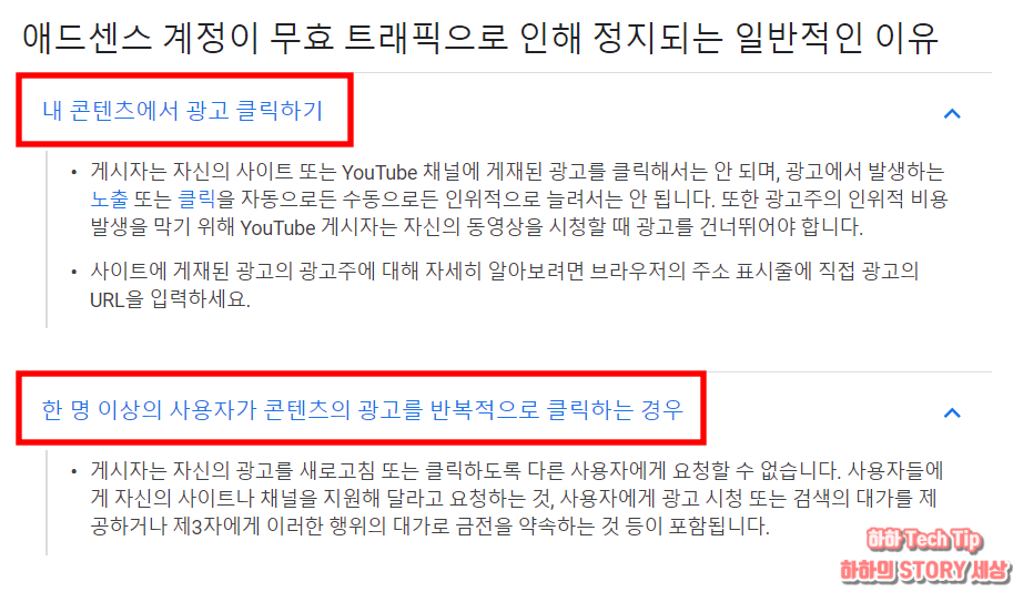 여태 무효 트래픽 조건이 자기 광고를 클릭하는 경우만 해당하지 알았지만 광고 유도, 타 사용자의 광고 반복 클릭, 비정상적인 프로그램 사용 등 3가지 사유가 더 있는 것이다.