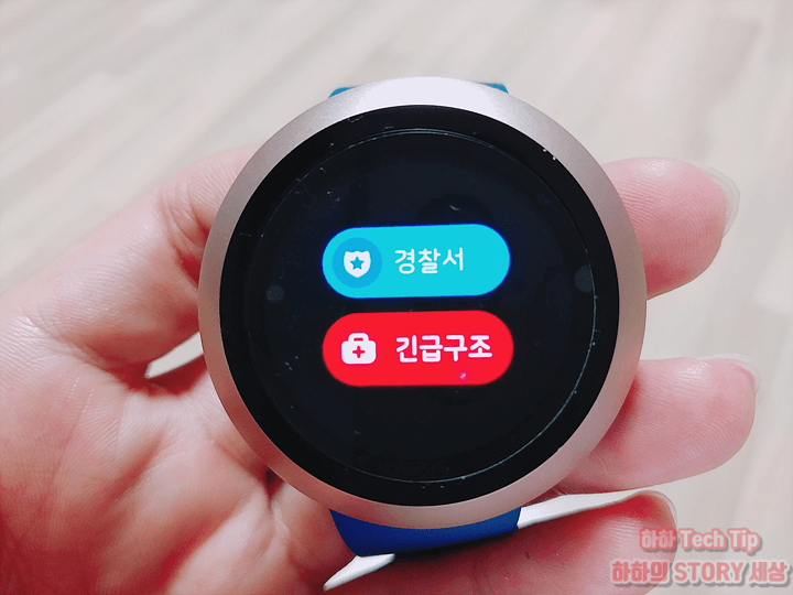 반대편에는 얇고 긴 홀이 위치하는데, 통화 시 사용하는 스피커이다. 워치폰을 지지하는 스트랩은 쉽고 탈착 할 수 있는 형태이고 피부가 예민한 아이들을 위해 각종 피부 자극 시험 테스트를 통과한 실리콘으로 되어 있다.