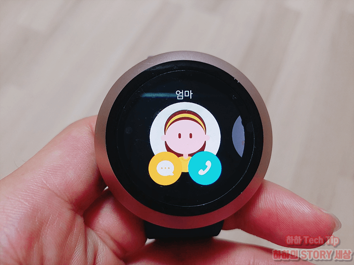 첫 화면에서 가볍게 터치하면 주소록으로 이동한다. 기본적으로 엄마, 아빠, 할아버지, 할머니로 구성되며, 지정된 2인까지는 무료로 통화가 가능하며, 전화번호 입력 없이 화면 터치로 통화 연결이 된다.
