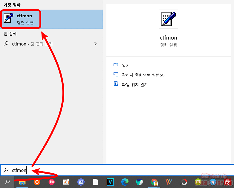 2. ctfmon 입력 후 상단에 나타나는 앱을 클릭하면 조치가 완료된다.