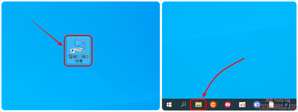 1. 바탕화면 내 PC 또는 작업표시줄에서 파일 탐색기를 클릭한다.