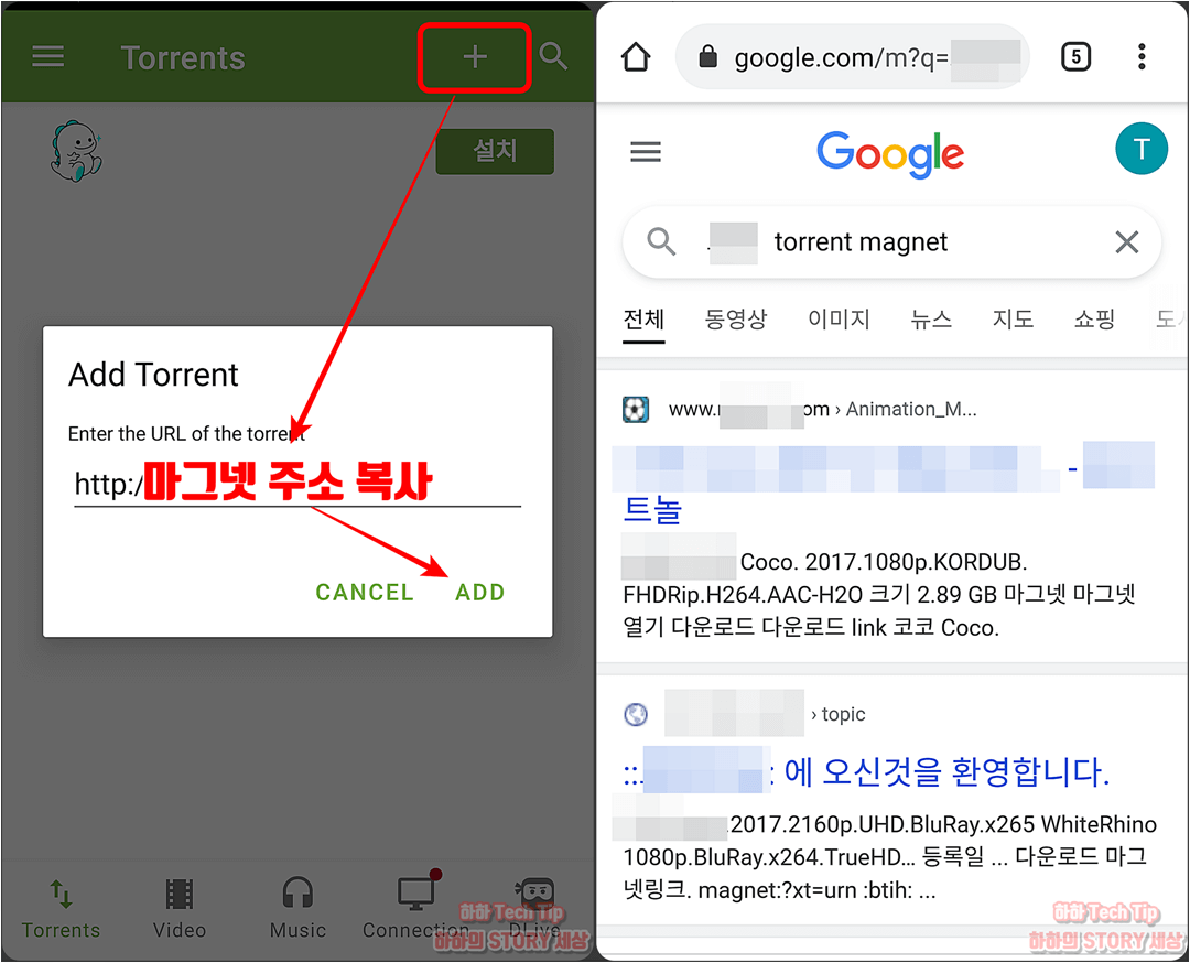 스마트폰에 미디어 등의 파일을 다운하기 위해서는 *.torrent 형식의 파일이나 magnet:?xt로 시작하는 마그넷 주소가 필요하다.