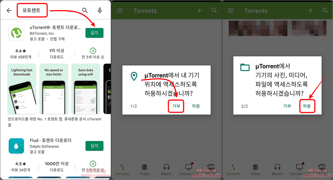 유토렌트 모바일은 다음 단계에 따라서 진행한다.
