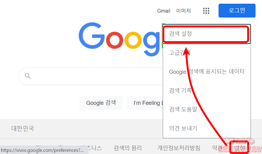 1. 우측 하단 설정을 눌러 검색설정으로 이동한다.