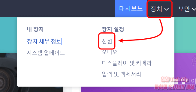 1. Lenovo Vantage 프로그램이 실행되면 상단 우측 장치 카테고리 선택 후 전원 항목을 클릭한다.