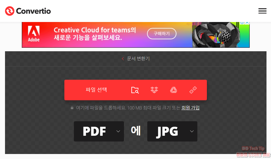 깔끔한 디자인이 눈에 들어오는 컨버티오는 컴퓨터에 저장된 자료 이외에도 드랍박스, 구글 드라이브, URL을 이용해 변환하고자 하는 파일을 가지고 올 수 있다.