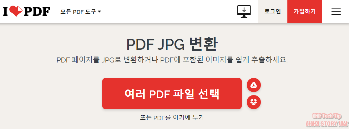 이용 방법은 이곳을 방문 후 드래그, 직접 검색, Dropbox, Google Drive를 이용해 소스를 찾아 업로드한다. PDF 변환 서비스는 전체 페이지와 개별 이미지를 추출하는 2가지를 제공하고 있으며, 개별 JPG는 월 10,500원을 지불해야 하기에 일시에 뽑아 비용 발생을 방지하도록 하자.